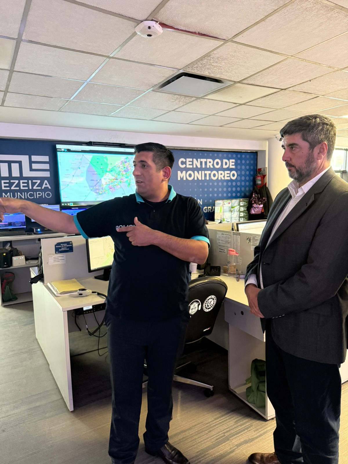 A continuación, Fuertes recorrió junto a funcionarios y operadores locales el Centro de Monitoreo de Ezeiza, donde pudo observar el funcionamiento del sistema en tiempo real y los mecanismos de articulación que permiten un control constante de la seguridad pública.