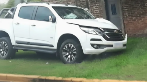 Siniestro vial en Chajarí: pick-up chocó una columna eléctrica; sin heridos y con importantes daños materiales