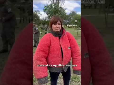 La ministra de Seguridad de la Nación Patricia Bullrich realizó una prueba con un perro de seguridad destinado a proteger a la gente. La funcionaria simuló ser un posible delincuente y se prestó al ataque del animal.