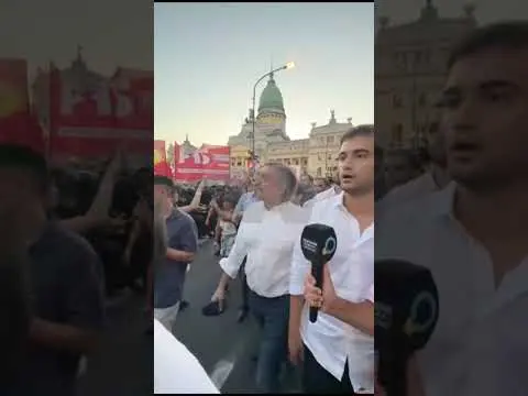 Tomás Ledesma defendió al líder camporista cuando éste y un grupo de diputados de UxP marcharon frente a la Cámara de Diputados. Hubo momentos de tensión afuera mientras adentro se debatía la Ley Ómnibus.Fuente: TN.