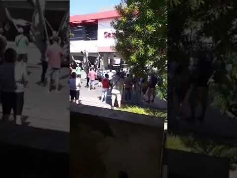 Un grupo de manifestantes se movilizó frente a las puertas del supermercado ubicado en San Juan y Victoria, en la capital entrerriana. Solicitaban diferentes productos alimenticios para cesar en su accionar.