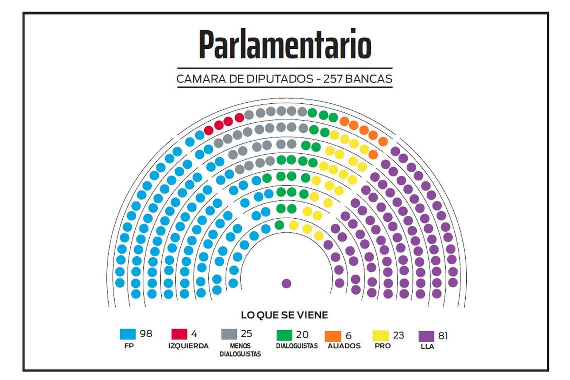 En el nuevo escenario parlamentario, el kirchnerismo se ubicará como segunda fuerza con 98 escaños. Por su parte, los distintos espacios que integran Provincias Unidas sumarán 17 bancas, tras incorporar 8 nuevos diputados, y podrían transformarse en los árbitros del quórum y las mayorías simples.