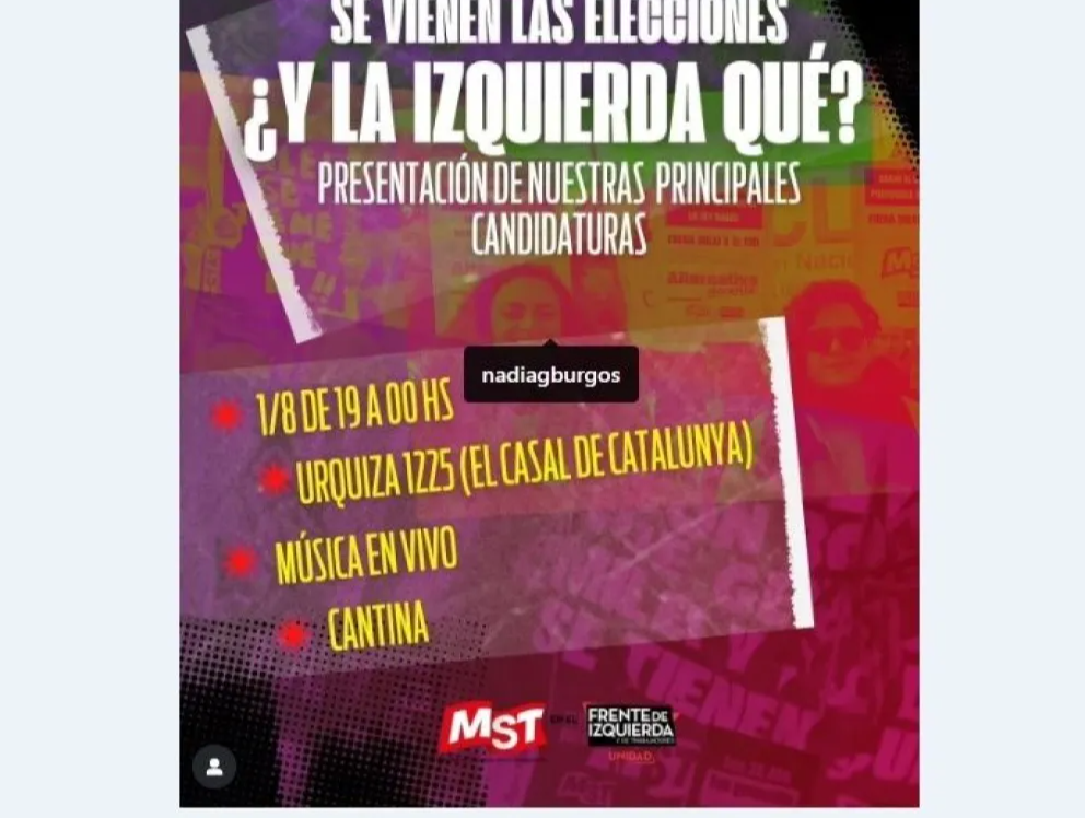 “Sí, se vienen las elecciones ¿Y la izquierda qué? Acercate a conocer nuestras candidaturas y propuestas, a compartir música y cultura de la resistencia en una jornada que invita a construir una salida a todo este desastre”, cierra la convocatoria.