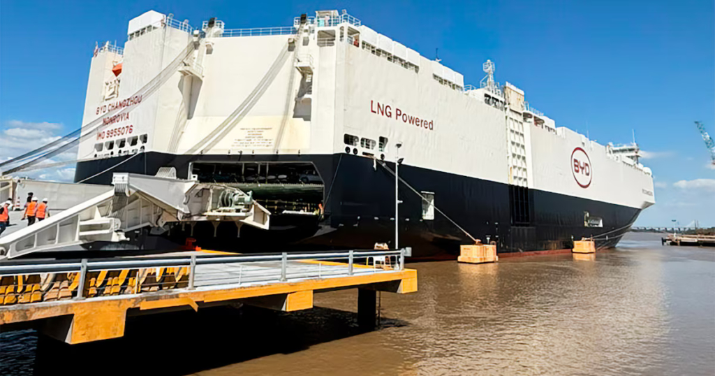 En medio de la polémica, el Changzhou llegó a Argentina y descargó cerca de 5.800 autos híbridos y eléctricos