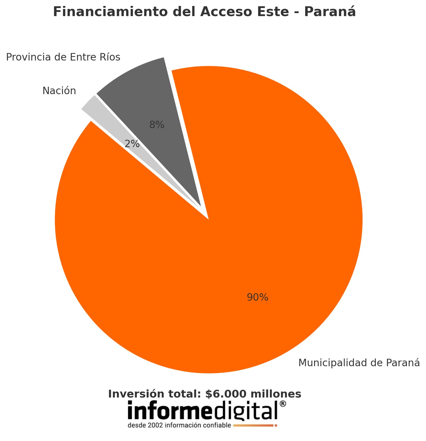 La Provincia de Entre Ríos se hará responsable de la iluminación, que equivale al 8% del presupuesto, mientras que Nación, a través de Vialidad Nacional, completará la señalización y las barandas de seguridad, que representan el 2% restante.