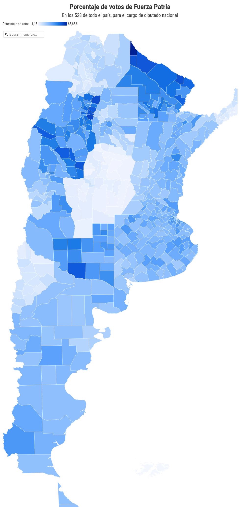 El mapa muestra una tendencia clara: los distritos donde Milei consiguió sus diferencias más amplias se concentran en provincias con fuerte voto opositor y alianzas locales con el PRO o la UCR, mientras el peronismo mantuvo su predominio en Formosa, Tucumán, La Rioja y La Pampa.