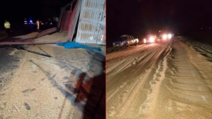 Vuelco de camión en ruta 11: cereales esparcidos en la calzada y reclamos al gobierno provincial