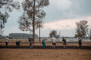 Al cumplirse un año de la usurpación de Casa Nueva por parte del Grupo Artigas junto a su hermana Dolores, los varones de la familia y su madre rememoraron el momento con una piedra conmemorativa.